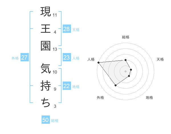 現王園 気持ちさんを姓名の画数から五運を鑑定