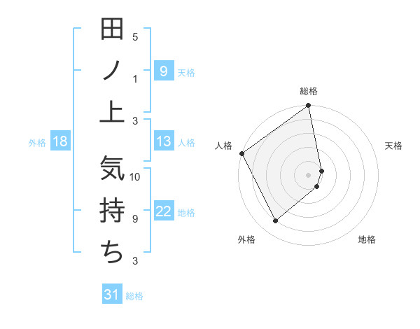 田ノ上 気持ちさんを姓名の画数から五運を鑑定