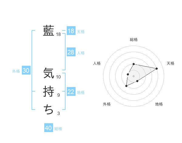 藍 気持ちさんの天格は18画の4点!