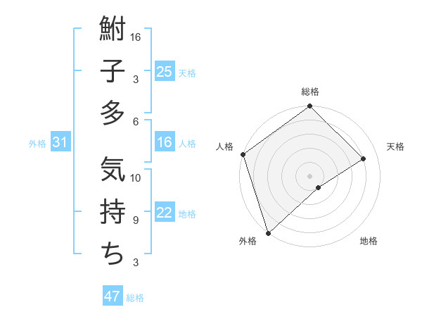 鮒子多 気持ちさんを姓名の画数から五運を鑑定