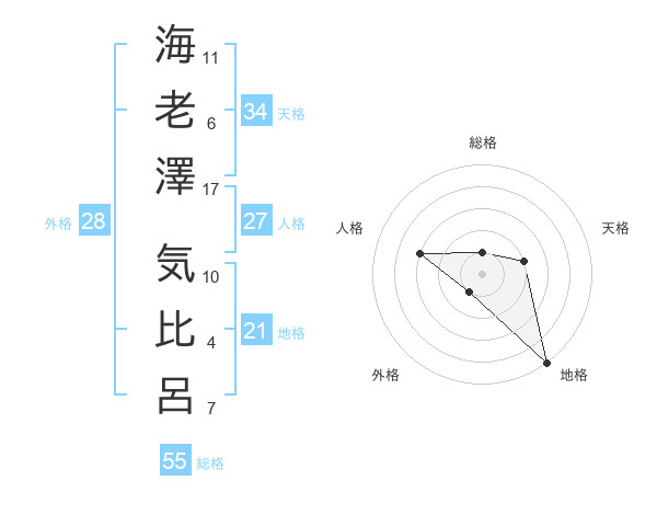 海老澤 気比呂さんの総格は55画の1点!