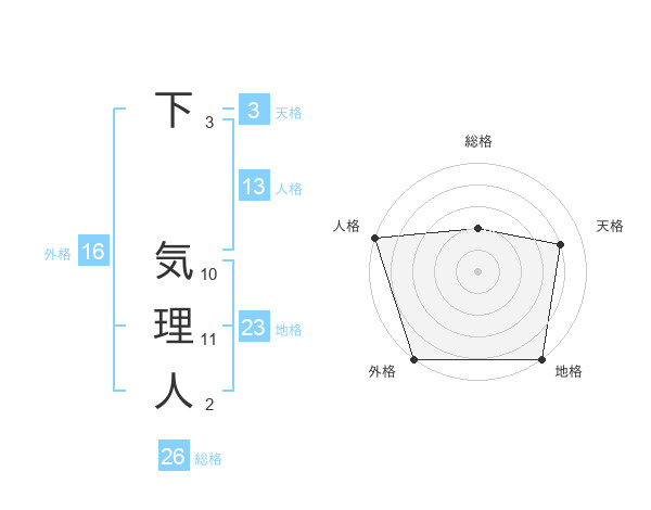 下 気理人さんの地格は23画の5点!