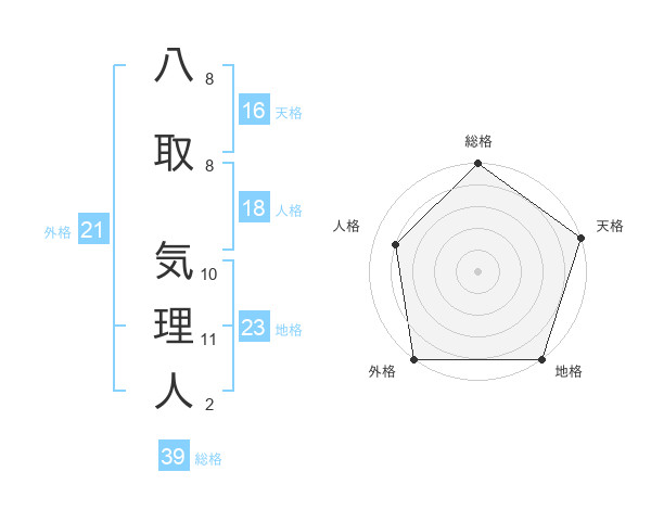 八取 気理人さんの外格は21画の5点!