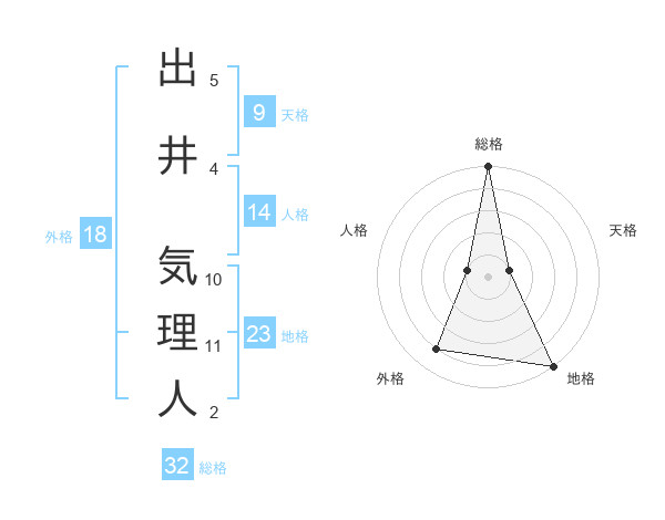 出井 気理人さんの総格は32画の5点!