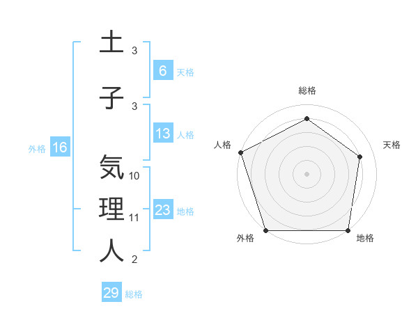 土子 気理人さんの総格は29画の4点!