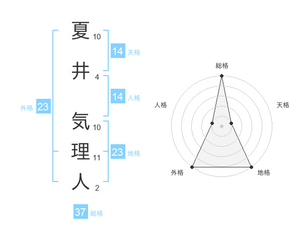 夏井 気理人さんを姓名の画数から五運を鑑定