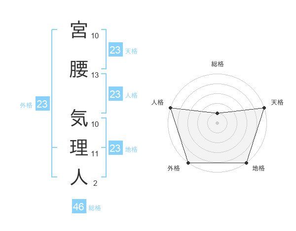 宮腰 気理人さんを姓名の画数から五運を鑑定