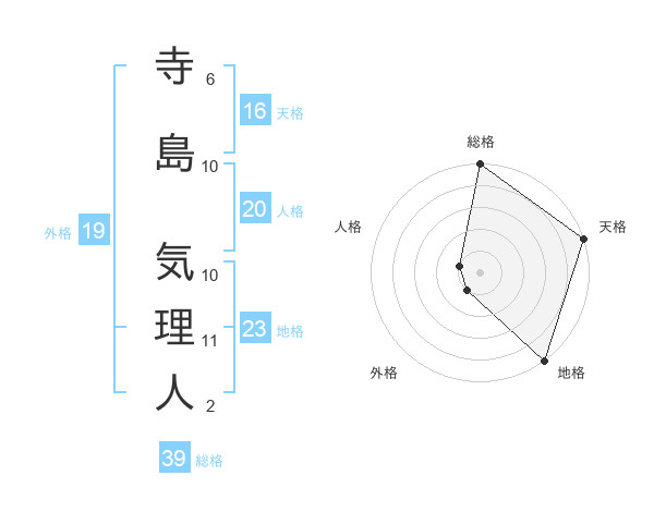 寺島 気理人さんを姓名の画数から五運を鑑定