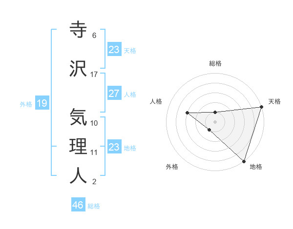 寺沢 気理人さんの天格は23画の5点!