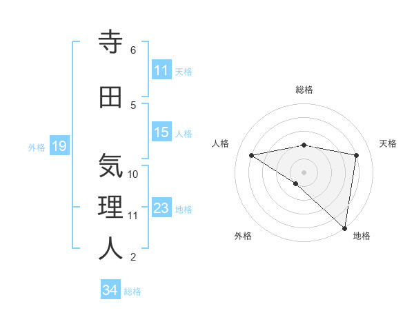 寺田 気理人さんの天格は11画の4点!