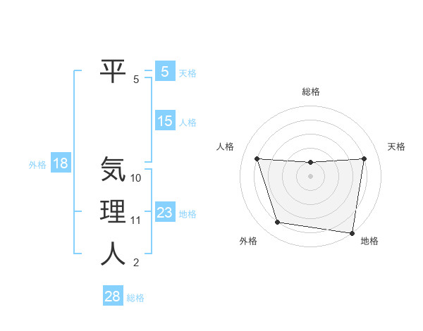 平 気理人さんを姓名の画数から五運を鑑定