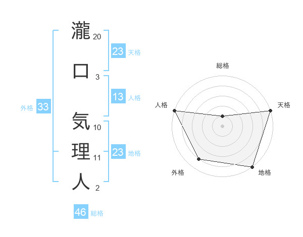 瀧口 気理人さんを姓名の画数から五運を鑑定