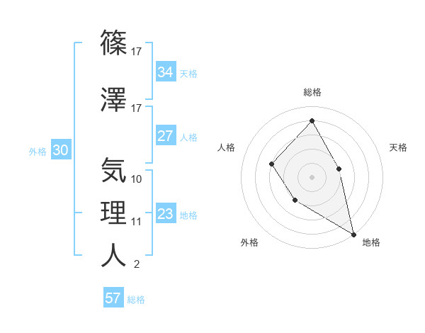 篠澤 気理人さんの総格は57画の4点!