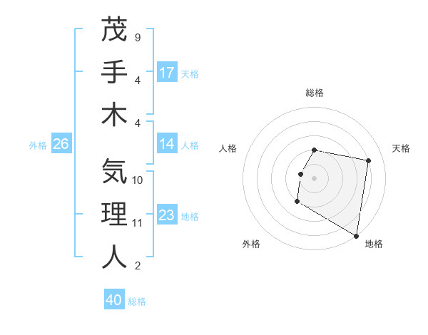 茂手木 気理人さんを姓名の画数から五運を鑑定