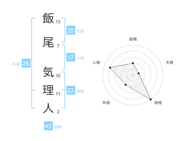 飯尾 気理人さんを姓名の画数から五運を鑑定