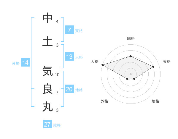 中土 気良丸さんの総格は27画の3点!