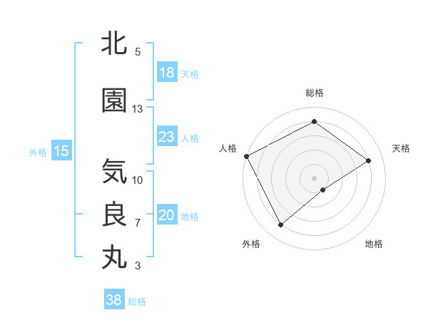 北園 気良丸さんを姓名の画数から五運を鑑定