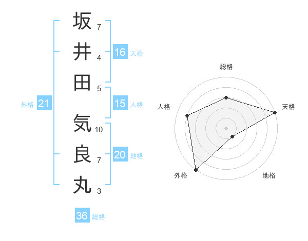 坂井田 気良丸さんを姓名の画数から五運を鑑定