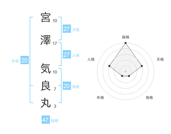 宮澤 気良丸さんを姓名の画数から五運を鑑定