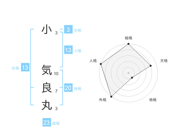 小 気良丸さんの総格は23画の5点!