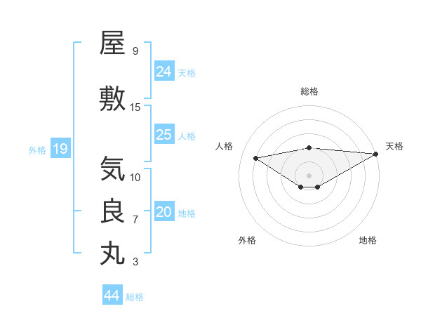 屋敷 気良丸さんを姓名の画数から五運を鑑定