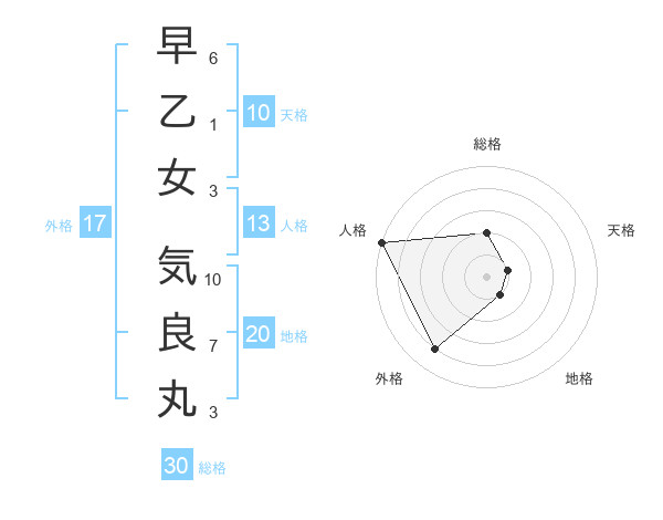 早乙女 気良丸さんの総格は30画の2点!