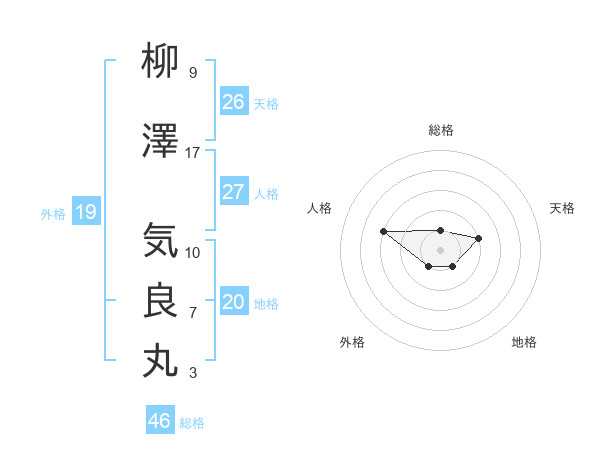 柳澤 気良丸さんを姓名の画数から五運を鑑定
