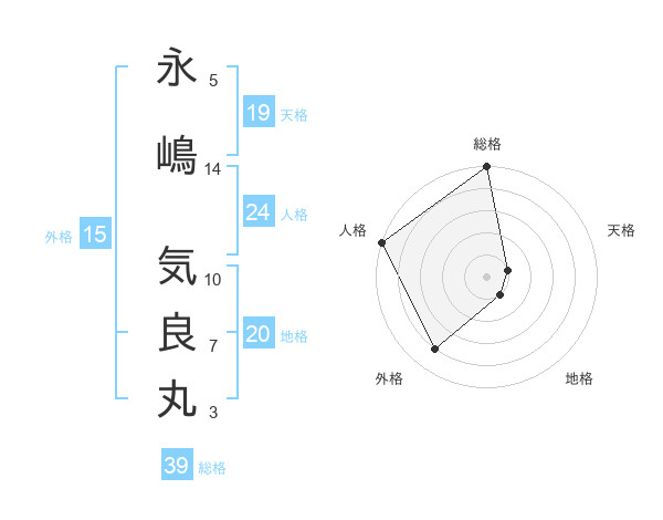 永嶋 気良丸さんの総格は39画の5点!