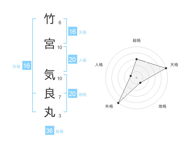 竹宮 気良丸さんを姓名の画数から五運を鑑定