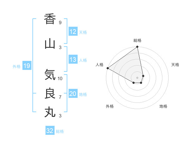 香山 気良丸さんを姓名の画数から五運を鑑定