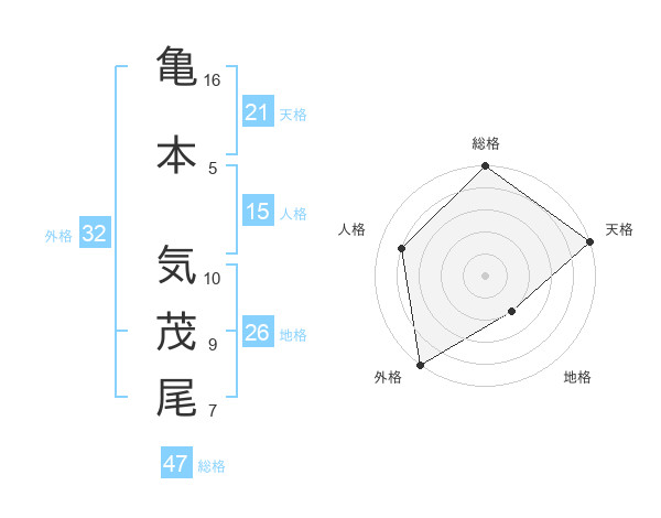 亀本 気茂尾さんの総格は47画の5点!