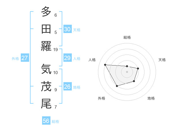 多田羅 気茂尾さんを姓名の画数から五運を鑑定