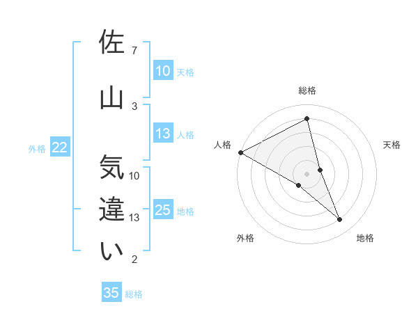 佐山 気違いさんを姓名の画数から五運を鑑定