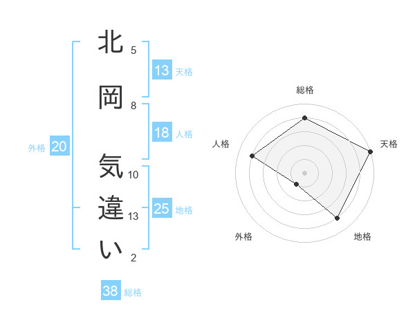 北岡 気違いさんを姓名の画数から五運を鑑定