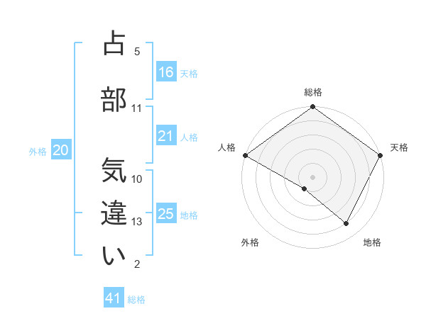 占部 気違いさんの総格は41画の5点!