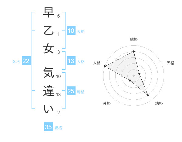 早乙女 気違いさんを姓名の画数から五運を鑑定