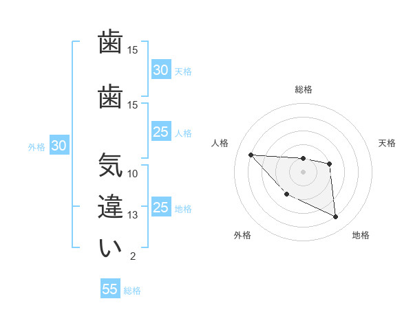 歯歯 気違いさんを姓名の画数から五運を鑑定