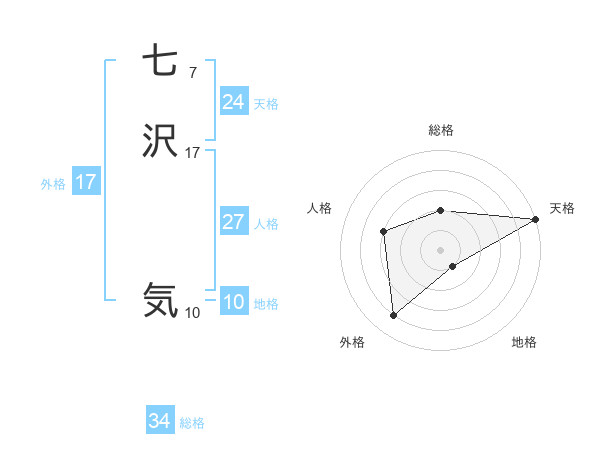 七沢 気さんの総格は34画の2点!