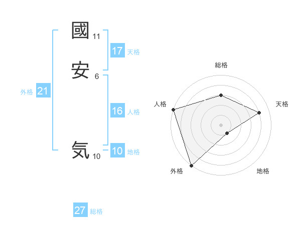 國安 気さんの外格は21画の5点!