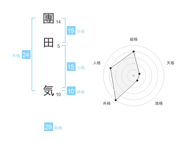 團田 気さんの総格は29画の4点!