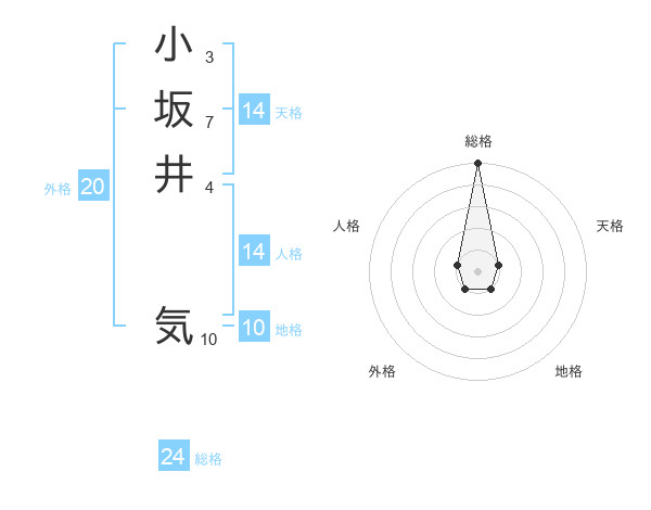 小坂井 気さんの総格は24画の5点!