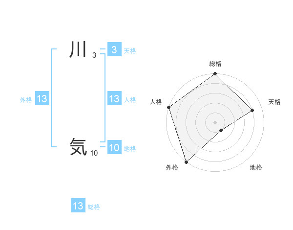 川 気さんの総格は13画の5点!
