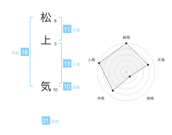 松上 気さんの総格は21画の5点!