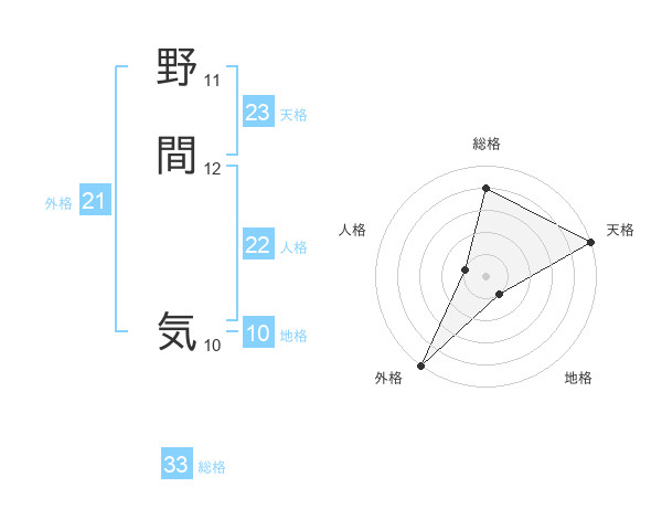 野間 気さんの外格は21画の5点!