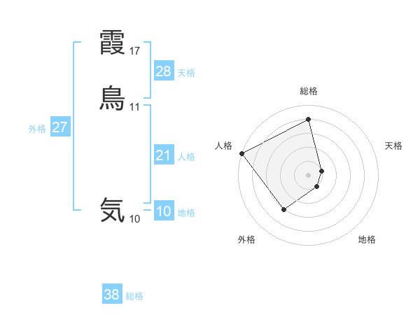 霞鳥 気さんの総格は38画の4点!