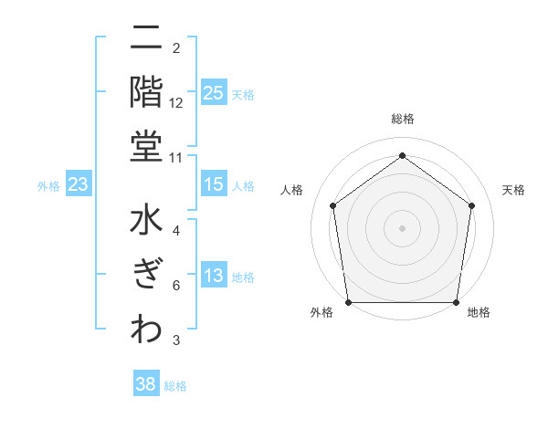 二階堂 水ぎわさんを姓名の画数から五運を鑑定