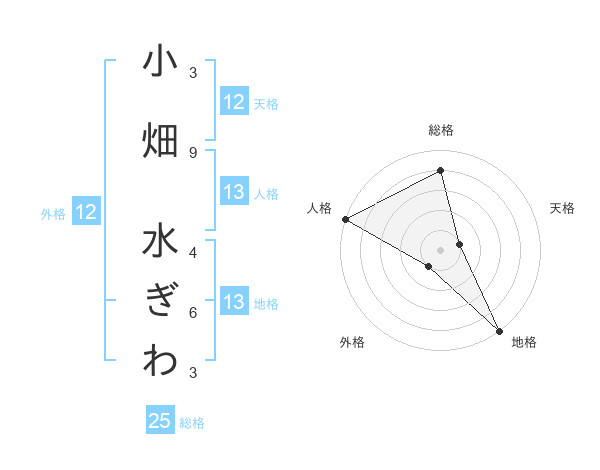 小畑 水ぎわさんを姓名の画数から五運を鑑定
