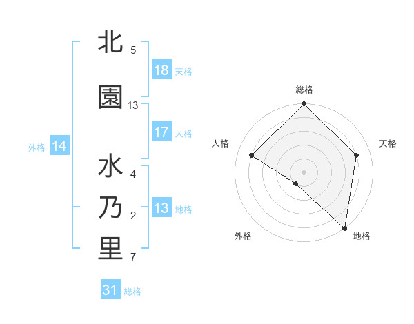 北園 水乃里さんの総格は31画の5点!