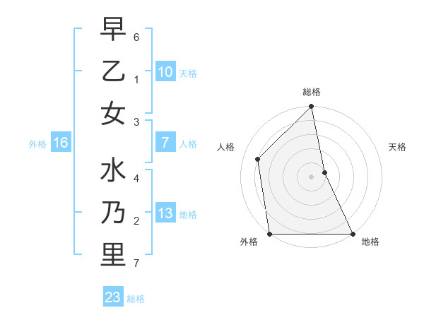 早乙女 水乃里さんを姓名の画数から五運を鑑定