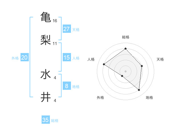 亀梨 水井さんの総格は35画の4点!